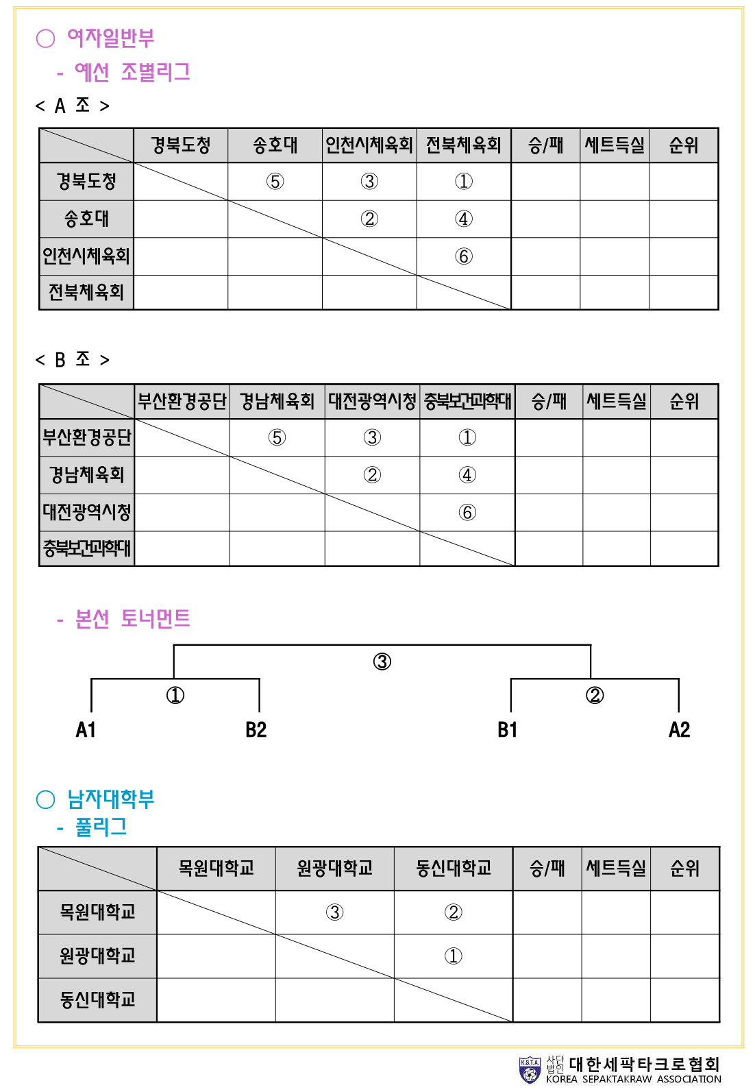 경북도청, 청주시청, 부산환경공단여자 8 전북체육회, 송호대학교, 충북보건과학대학교, 인천시체육회, 경남체육회, 대전광역시청, 부산환경공단, 경북도청 대학부 남자 3 원광대학교, 동신대학교, 목원대학교