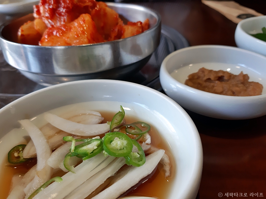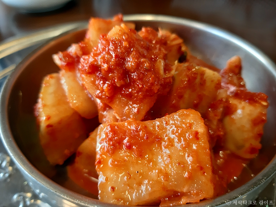 깍두기에 묶힌 양념 좀 보소~ 무우 육즙이 그대로 보인다. 곰탕에 깍두기 맛의 조화는 말이 필요없다.