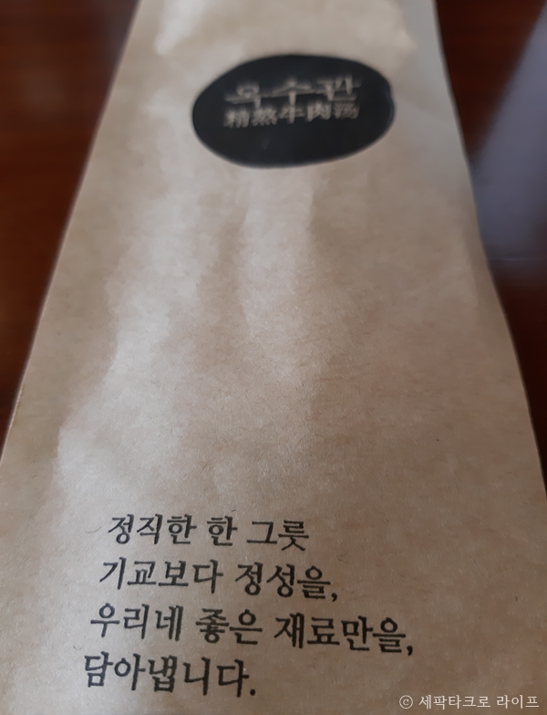 젖가락과 숫가락이 종이에 담겨 나오는데 '정직한 한 그릇 기교보다 정성을, 우리네 좋은 재료만을 담아냅니다' 라는 글자에 맛을 내는 자부심이 있다는 것을 알 수 있다. 한마디로 맛집이다.
