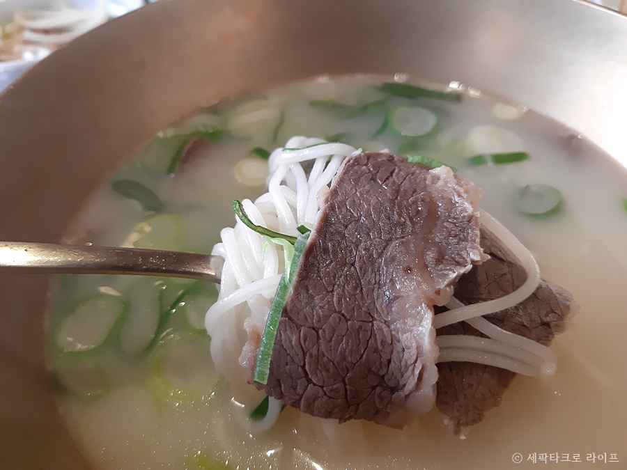 뽀얀 국물에 국수와 함께 들어 있는 고기까지 들어 있는 옥수관 곰탐은 간도 잘 되어 있고 냄새도 없었다. 국물을 먼저 마셔보는 순간 한 그릇 그냥 드링킹하게 된다. 간만에 보약 한 그릇을 먹는 점심이 되었다.