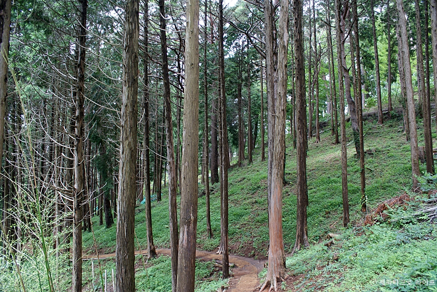 대숲 가는 길 이정표를 따라 가면 점점 대나무가 많이 보이게 된다. 좌측 편에는 표고버섯을 키우는 참나무들이 세워져 있는 모습을 보았다. 어릴 적 한라산에서 아버님이 표고버섯 농장을 하셔서 자주 보았던 풍경을 오랜만에 보게 되었다.