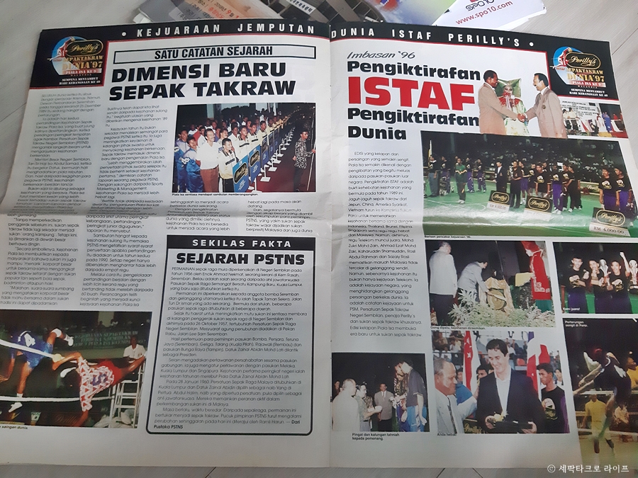 30년이 넘은 세팍타크로 매거진을 꺼내보면서 말레이시아 중흥 시절이었던 세팍타크로를 떠올려 본다. 1998년 방콕 아시안게임을 기점으로 말레이시아 세팍타크로는 침체기에 들어가 정체기를 맞이하고 최근에 다시 부흥을 위해 서서서 인기 몰이를 하고 있는 중이다. 하지만 과거 명성에 맞는 경기 기량은 현저하게 떨어지게 되었다는 사실은 부인할 수 없다.